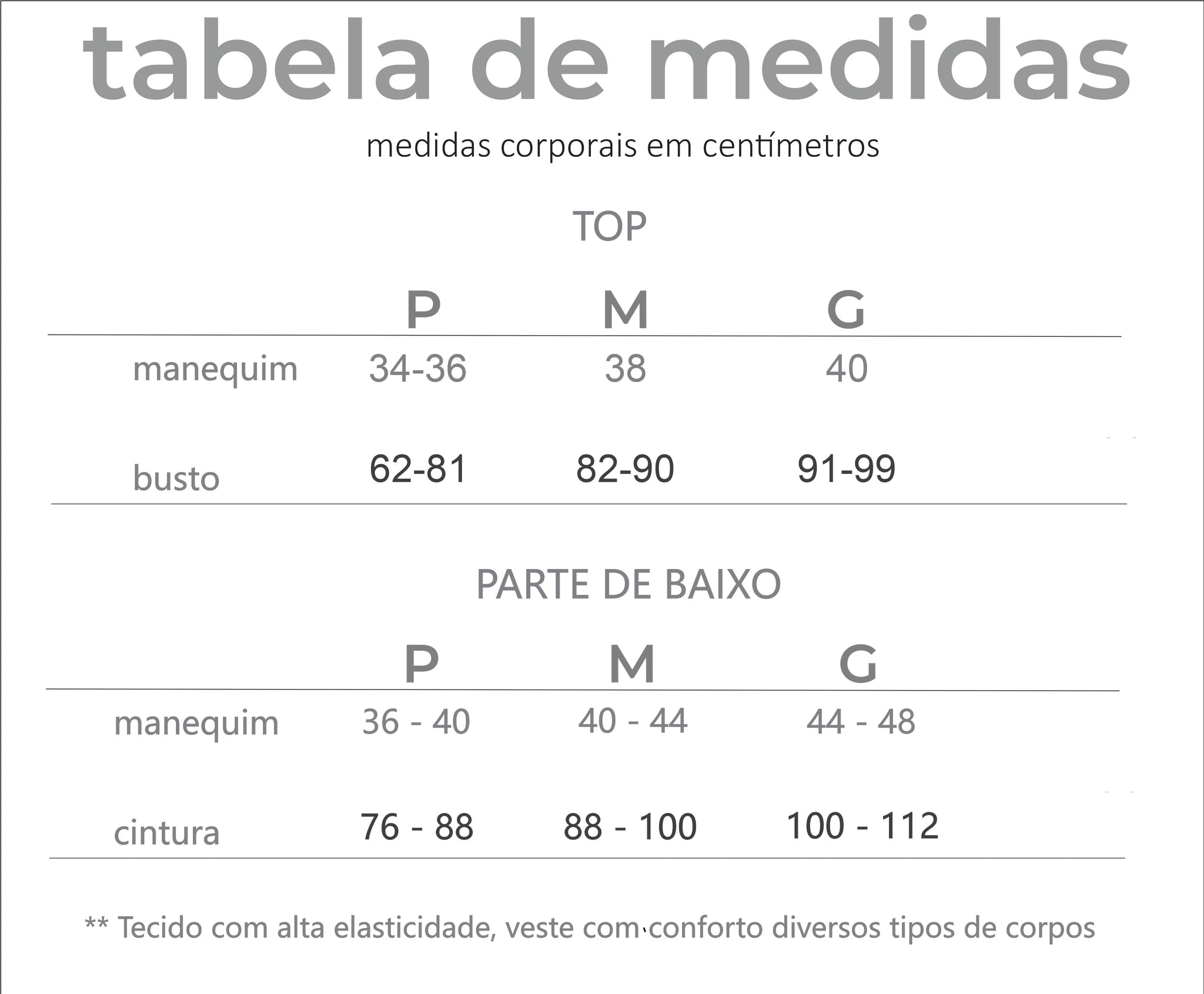 TABELA DE MEDIDAS NO CARROSSEL DE FOTOS